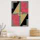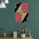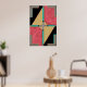 Le "Quad" présente une symétrie géométrique audacieuse avec des tons or, aqua et corail vibrants sur fond noir et épuré. Ses lignes épurées et son esthétique rétro-futuriste mêlent Art Déco et abstraction moderne, en faisant une pièce séduisante pour les amateurs d'art mural sophistiqué et géométrique.
