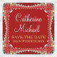 d'inspiration orientale asiatique. Bordures en dentelle motif unique et élégante en rouge, or et blanc passionné - Mariage, Fiançailles, Anniversaire Exquis et élégant personnalisés Mariage, Enregistrer la Date arrondi coin carré autocollant. Tout le texte peut être entièrement customisé, y compris le style de police et de couleurs.