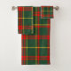 Ajoutez une ambiance classique à votre salle de bain cette année avec un ensemble de serviettes à carreaux tartan rouge et vert. Cet ensemble de serviettes présente également des paillettes dorées comme si le tissu était légèrement saupoudré d'un accent subtil. Utilisez l'ensemble de serviettes de Noël rouge et vert pour créer une décoration de salle de bain cosy. Design généré par IA par Susang6