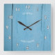 Rough Blue Painted Wood Panelling Square Wall Clock