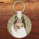 This button keychain features my portrait of a gorgeous long haired, Rough Collie, against a brown floral print. Perfect to keep your keys safe or as a gift.