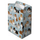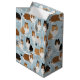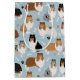 Cute Rough Collie dogs sit and stand and rollover with sable, tri-colour, merle and white coats with scattered dog bones and pawprints pattern.