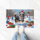 Rough Collie Running in Snow with Christmas Hat Doormat
