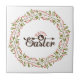 Cute round colourful floral wreath with white bunny-Happy Easter. Customizable ceramic tile template