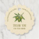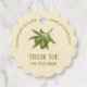 Add a touch of elegance to your products with our round custom business thank you tag featuring a delicate olive branch illustration. Perfect for expressing your gratitude to customers or clients, this tag combines a refined design with personalized text, making it a stylish addition to your packaging. Crafted with care, it’s a thoughtful detail that shows your appreciation and elevates your brand’s presentation.