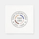 Simple custom round company logo with slogan and website address, no minimum order quantity and no setup fee. Great business branded napkins.