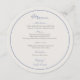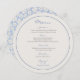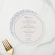 Chic, fresh and playful. This circular menu card template features a set of trendy and modern fonts, against a warm off-white background. It includes 4 meal and drink sections. The back of the card wears a playful floral blue jacket. Cheeky and fun. Personalize to make it your own.