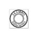 An Ex Libris rubber stamp design with a simple bold round design and a decorative outer circle