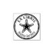 A round Ex Libris rubber stamp design with a bold edged and dotted frame with a star motif.