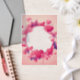 Great to show off your eternal love to your wedding or anniversary party guests. This vellum paper design features a pink round frame consisting of red hearts.