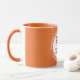 Round ORANGE single image frame custom Combo Mug for photo or logo, 11 oz., 3.2" diameter x 3.8" high, with ORANGE background single image frame (one central customizable design area) providing maximum coverage of the mug in ORANGE, plus personalized text template optimized for the COPPERPLATE BOLD font (you may need to slightly adjust the curvature and position of the text if changing font style or size). See store for more templated font options. The background color has been chosen to closely resemble the combo mug inside and handle color but may not match exactly, due to the difference between printing and enamel tones.