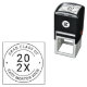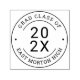 A modern custom self-inking rubber stamp design that features the current graduation year framed by "Grad Class of" and the school name. Personalize with the class graduation year, school name, or student name. Classic dots accent the round frame.