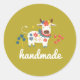 Round handmade product label sticker with illustrations of cows and flowers. Illustrations of flowers and simple shapes in a Scandinavian cozy style.