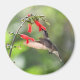 3" round magnet with a picture of a hummingbird feeding on a red flower