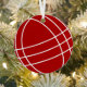Round metal bocce ball Christmas tree ornament. Personalize with custom Holiday text or photo on the back. Round ornament with ribbon.