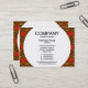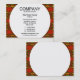 A business card template with a round centre panel in white with a patterned border. Suitable for many types of business, could also be customized in other ways, used as a mini flier or advertisement. The reverse of the card has the same white panel layout, which can be used for additional information, or left left plane for writing.