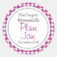 purple / black and white gingham patterned food label perfect for labelling plums or other black or dark red fruits preserves, jelly's, jams truffles or other food with made with plums, blackberries, blackcurrants,black grapes or black cherries, perfect for Christmas gifts, cookie exchange parties or for selling your home made products at farmer's market's and craft fairs. Use these stickers to seal your Christmas gifts or for a professional look to your for sale goodies. Also perfect for children's homemade favours and gifts to family and friends. Currently reads MacGregor's Homemade Blackberry Preserve plus add the date you item was produced. Fully customizable with your own name and product details and date. Designed by Sarah Trett.