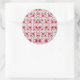 Round sticker design featuring vibrant pink