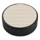 Round stool top with a pattern of small, colorful flowers on a cream background. The sides are black mesh, giving a modern and elegant look.