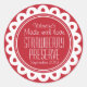 Red and white food love hearts label perfect for labelling red fruits preserves, jelly's, jams truffles or other food with made with strawberries, raspberries, loganberries, boysenberries or cranberries, perfect for Christmas gifts, cookie exchange parties or for selling your homemade products at farmer's market's and craft fairs. Use these stickers to seal your Christmas gifts or for a professional look to your for sale goodies. Also perfect for children's home cooked favours and gifts to family and friends. Currently reads Valentine's Made with love Strawberry Preserve plus add the date you item was produced. Fully customizable with your own name and product details and date. Designed by Sarah Trett.