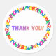 Round Thank You sticker for classroom teachers or any educator. ABC's colorful design.