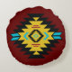 A geometric print on a soft round throw pillow