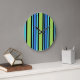 A chic Wall Clock with a deckchair-striped Blue Moons pattern in Turquoise, Neon Green, Dazzling Blue and Black. Part of the Posh & Painterly 'Blue Moons' collection.