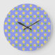 Round Wall Clock: Primroses on Violet Blue, Polkas Large Clock