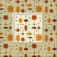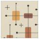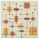 This atomic-age inspired mid century modern design has bold lines and geometric shapes in shades of orange and yellow
