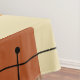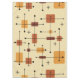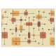 This atomic-age inspired mid century modern design has bold lines and geometric shapes in shades of orange and yellow