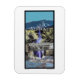 A digital landscape painting of scenic Vermont. Stowe Mountain rises above Moss Glen Falls, with a light blue sky as a background. As the cold water rushes down to go beneath a covered bridge, it ends up in Warren Falls. There is a black border around the artwork. In a white font there is, "Vermont", "Beautiful Route 100". And you can find the statehood year at the bridge footings, looking like a carved 1791. A turkey stands watchful at the bridge's entrance. Image Copyright ©2023 Kimberly J Tilley.