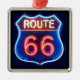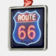 This square premium ornament is an appropriate party favour for a 20s, 40s, and 60s decade party! Ornament has an image of a Route 66 orange, yellow and green neon light on black. U.S. Route 66 (also known as the Will Rogers Highway after the humorist, and colloquially known as the "Main Street of America" or the "Mother Road") was a highway within the U.S. Highway System. One of the original U.S. highways, Route 66 was established in November 1926- with road signs erected the following year. It was recognized in popular culture by both a hit song originally recorded by the Nat King Cole Trio in 1946, and the Route 66 television show in the 1960s. See the entire Psychedelic 60s Ornament collection in the PARTY FAVORS section.