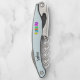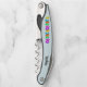 This corkscrew is pale blue with a row of colourful bright balloons with matching hanging streamers in colours of yellow, blue, orange, greeen, pink, and purple.  Customize your name or text with the templates on the front and back.