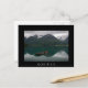 Postcard of a landscape with an old rowboat in a lake with the reflection of the mountains in the still water, Hjelle, Norway with a black border and the text: 'Norway'.