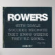 A motivational rowing poster, of ripped and torn blue denim cloth, with white loose thread and cross-stitch lettering. Poster design and rowing quote by Felicity Luckey of Great Minds Think Fit™.