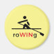 Designed to inspire a crew or individual rower or sculler, this motivational magnet shows a pictogram rower on a yellow background, with the caption roWINg. The WIN of rowing is picked out in bright red for emphasis.