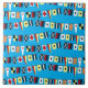 Rows of brightly coloured nautical flags on a deep aqua background.