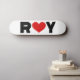The name Roy with the letter o replaced with a red love heart. The colours can be changed.