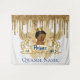 Adorable African Prince wearing a gold crown on top of a golden regal lion's crest and banner with a gold drip glitter and white diamond patterned background. “Prince” text in Royal Blue on the centre banner and “est. 2022” on the left and right. Customize with your own bottom text. ©2022 Miss Sassy Party Designs