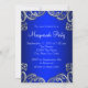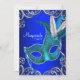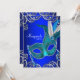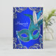 Elegant teal blue feather mask royal blue and teal blue masquerade party invitation. This elegant teal blue masquerade party invitation is easily customized for your event by simply choosing the "Customize it!" button to begin adding your event details, font style, font size & colour, and wording.