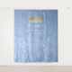 Create your own light baby blue and gold elegant backdrop tapestries to make your big day memorable! Send a big "welcome" to your guests with a large fabric sign/banner as they arrive... What are you celebrating? Whether it's a sweet 16/15 birthday party, dusty blue wedding, floral fiesta, a royal baby or bridal shower... these beautiful and easy DIY template tapestries can add that touch of sparkle and glam. The light blue and gold theme on this fabric prop can work for a Cinderella themed quinceanera and masquerade party too... The rustic floral design illustrated by Raphaela Wilson, depicts a lovely pattern of baby blue roses, a glamourous tiara crown of gold, and festive butterfly confetti. If you choose to edit the fairy tale design even further, additional faux metal options in silver, rose gold, and light blue can be seen. Simply click on the svg graphics, and you can change them to any desired colour - even the pretty watercolor rose pattern flowers! These custom photo backdrops can be personalized by you to perfectly match your party theme. Want to change the calligraphy script and modern typography? You can edit the fonts too. Enjoy! Category: personalized hanging wall backdrops for parties; dusty blue wedding photo backdrops; and royal baby shower tapestries for girl or boy. Baby blue gold wedding theme colours: light blue, white, and gold.