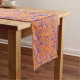 Long Style Table Runner table cover and home decor accessory with Royal Blue And Citrus Orange Pattern artwork design image by TheFabricSeal | Zazzle is a beautiful digital graphic art illustration combining bold complimentary colours of blue and orange colour palette tones. This repeating four part panel pattern has influences and inspirations of Mediterranean, Tropical Islands and Coastal beach art styles.