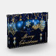 Royal Blue and Gold Christmas Baubles ornaments design with a dark blue bokeh background