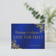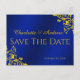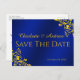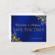 Elegant royal gradient blue and yellown golden floral embellished wedding save the date personalized postcards. Personalize with your own details.