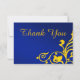 Elegant and bold royal blue gradient style and yellow golden floral embellished personalized wedding Thank you cards. Personalize with your own message.