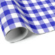 A wrapping paper designed with a royal blue and white check plaid pattern. Customize the white background among other options.