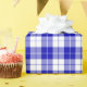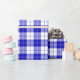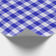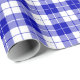 A wrapping paper designed with a royal blue and white plaid pattern. Customize the white background among other options.
