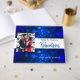 If you're having a winter wedding, this blue guestbook covered with snowflakes is perfect. The text and photograph are easily personalized.