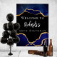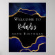 A royal blue, black and golden agate background. Personalize and add a name and age.
