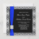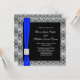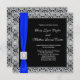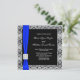 Royal blue with silver grey lace overlay black and diamond trim bow royal navy blue black square wedding invitation.